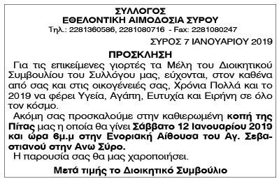 Πρόσκληση Εθελοντικής Αιμοδοσίας Σύρου Κείμενο Βλέπε εικόνα Αριθμός Φύλλου: Αριθμός Φύλλου 5042 Κατηγορία: Κατηγορία Πρόσκληση