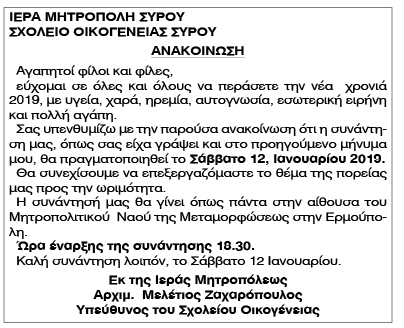 Ανακοίνωση Σχολείο Οικογένειας Κείμενο Βλέπε εικόνα Αριθμός Φύλλου: Αριθμός Φύλλου 5042 Κατηγορία: Κατηγορία Ανακοίνωση
