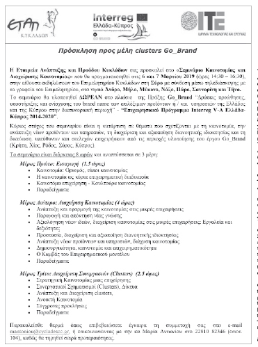 Σεμινάριο Καινοτομίας και Διαχείρισης Καινοτομίας Κείμενο Βλέπε εικόνα Αριθμός Φύλλου: Αριθμός Φύλλου 5056 Κατηγορία: Κατηγορία Πρόσκληση