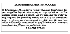 Συλληπητήρια από ΦΑΚΕΚ Κείμενο Βλέπε εικόνα Αριθμός Φύλλου: Αριθμός Φύλλου 5066 Κατηγορία: Κατηγορία Ανακοίνωση