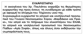 Ευχαριστήριο οικογένειας Χρήστου Παυλάτου Κείμενο Βλέπε εικόνα Αριθμός Φύλλου: 5070 Κατηγορία: Ευχαριστήριο