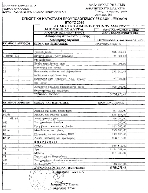 Συνοπτική Κατάσταση Προϋπολογισμού Εσόδων - Εξόδων έτους 2019 Κείμενο Βλέπε εικόνα Αριθμός Φύλλου: Αριθμός Φύλλου 5091 Κατηγορία: Κατηγορία Προϋπολογισμοί