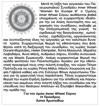 Ευχαριστήριο του Ομίλου Inner Wheel Σύρου Κείμενο Βλέπε εικόνα Αριθμός Φύλλου: 5112 Κατηγορία: Ευχαριστήριο