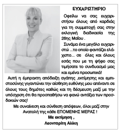 Ευχαριστήριο Αλίκης Λεονταρίτη