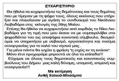 Ευχαριστήριο Ανθής Χαλκιά