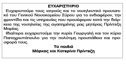 Ευχαριστήριο Μαρίας Πρίντεζη