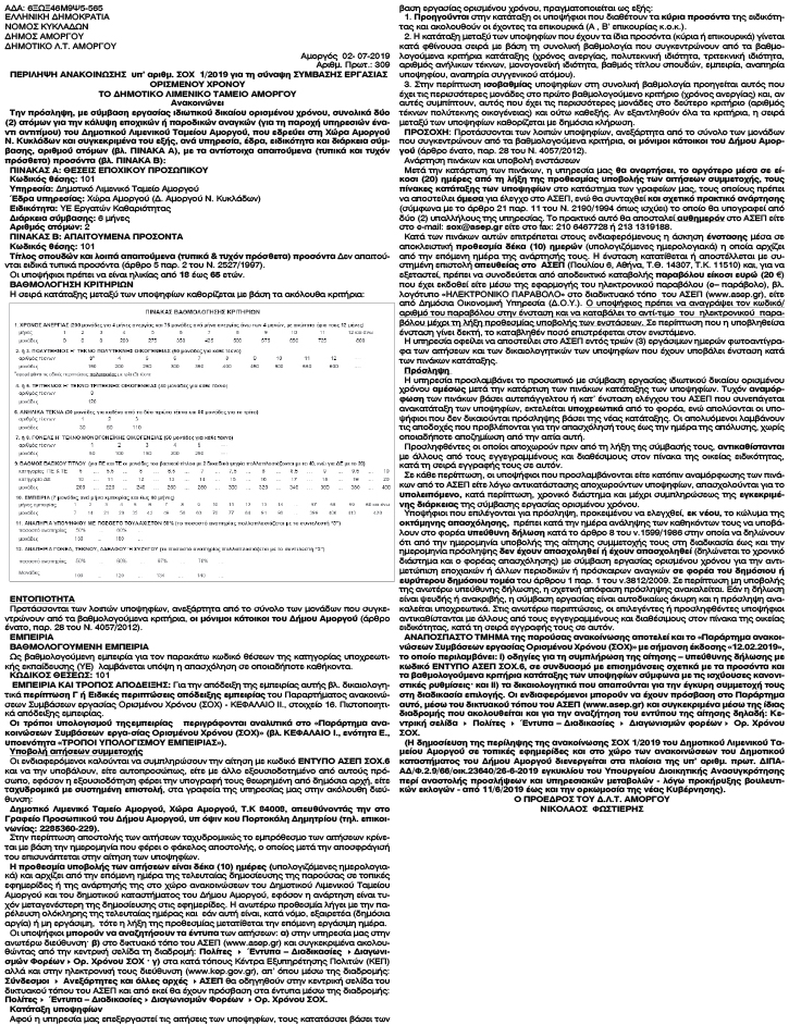 Περίληψη ανακοίνωσης υπ' αριθμ. ΣΟΧ 1/2019 του Δ.Λ.Τ Αμοργού Κείμενο Βλέπε εικόνα Αριθμός Φύλλου: 5159 Κατηγορία: Προκήρυξη Θέσεων