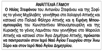Αναγγελία γάμου Ηλία Στεφάνου και Ειρήνης Μπουσμπουρέλη Κείμενο Βλέπε εικόνα Αριθμός Φύλλου: 5164 Κατηγορία: Αναγγελία Γάμου