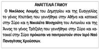 Αναγγελία γάμου Νικολάου Λουμή και Νικολέτας Μοσχούτη Κείμενο Βλέπε εικόνα Αριθμός Φύλλου: 5167 Κατηγορία: Αναγγελία Γάμου