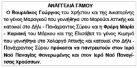 Αναγγελία γάμου Βουρλάκου Γεώργιου και Φρέρη Μαρία - Κυριακή Κείμενο Βλέπε εικόνα Αριθμός Φύλλου: 5167 Κατηγορία: Αναγγελία Γάμου