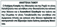 Αναγγελία Γάμου Κάλεμου Κοσμά και Κουσαθανά Ελευθερίας Κείμενο Βλέπε εικόνα Αριθμός Φύλλου: 5183 Κατηγορία: Αναγγελία Γάμου