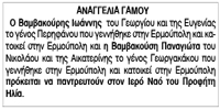 Αναγγελία γάμου Βαμβακούρη Ιωάννη και Βαμβακούση Παναγιώτας Κείμενο Βλέπε εικόνα Αριθμός Φύλλου: 5197 Κατηγορία: Αναγγελία Γάμου