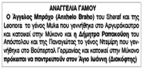 Αναγγελία γάμου Μπράχου Άγγελου και Δήμητρας Ραπακούση Κείμενο Βλέπε εικόνα Αριθμός Φύλλου: 5198 Κατηγορία: Αναγγελία Γάμου