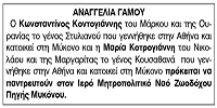 Αναγγελία Γάμου Κωνσταντίνου Κοντογιάννη και Μαρίας Κοτρογιάννη Κείμενο Βλέπε εικόνα Αριθμός Φύλλου: 5208 Κατηγορία: Αναγγελία Γάμου