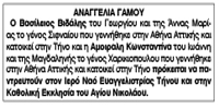 Αναγγελία Γάμου Βασιλείου Βιδάλη και Κωνσταντίνας Αμοιραλή Κείμενο Βλέπε εικόνα Αριθμός Φύλλου: 5216 Κατηγορία: Αναγγελία Γάμου