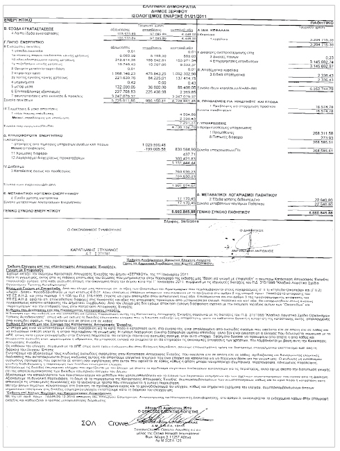 Ισολογισμός Έναρξης 01/01/2011 του Δήμου Σερίφου Κείμενο Βλέπε εικόνα Αριθμός Φύλλου: Αριθμός Φύλλου 5218 Κατηγορία: Κατηγορία Ισολογισμοί