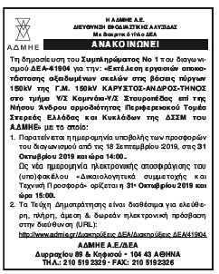 Ανακοίνωση ΑΔΜΗΕ Κείμενο Βλέπε εικόνα Αριθμός Φύλλου: Αριθμός Φύλλου 5238 Κατηγορία: Κατηγορία Ανακοίνωση