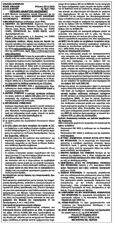 Επέκταση Βιολογικού καθαρισμού αλογομάνδρας Μυκόνου Κείμενο Βλέπε εικόνα Αριθμός Φύλλου: Αριθμός Φύλλου 5266 Κατηγορία: Κατηγορία Περιλήψεις