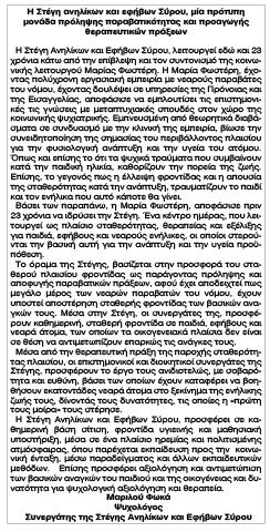 Ανακοίνωση της Στέγης Ανηλίκων και Εφήβων Κείμενο Βλέπε εικόνα Αριθμός Φύλλου: 5318 Κατηγορία: Ανακοίνωση