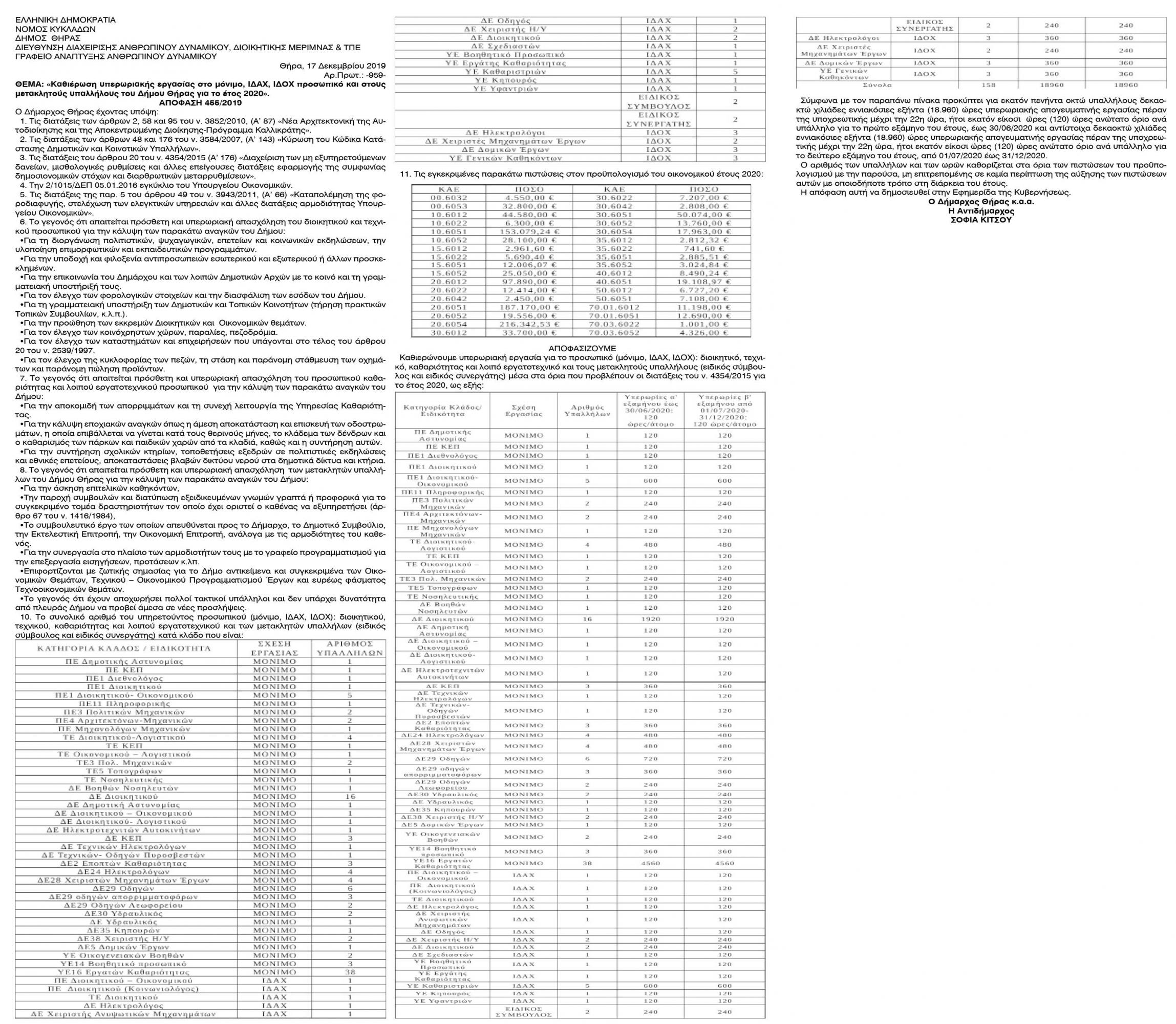 Καθιέρωση Υπερωριακής εργασίας στο μόνιμο,ΙΔΑΧ, ΙΔΟΧ προσωπικό και στους μετακλητούς υπαλλήλους του Δήμου Θήρας για το έτος 2020 Κείμενο Βλέπε εικόνα Αριθμός Φύλλου: Αριθμός Φύλλου 5332 Κατηγορία: Κατηγορία Απόφαση