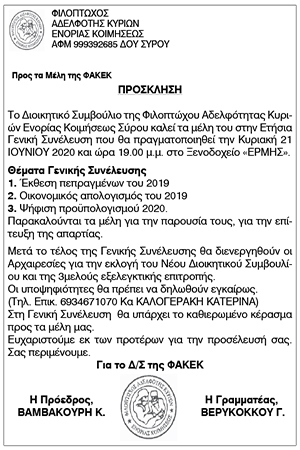 Πρόσκληση Γενικής Συνέλευσης ΦΑΚΕΚ Κείμενο Βλέπε εικόνα Αριθμός Φύλλου: Αριθμός Φύλλου 5396 Κατηγορία: Κατηγορία Πρόσκληση