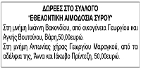 Δωρεές στο Σύλλογο Εθελοντικής Αιμοδοσίας Σύρου Κείμενο Βλέπε εικόνα Αριθμός Φύλλου: 5401 Κατηγορία: Δωρεές