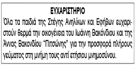 Ευχαριστήριο Στέγης Ανηλίκων