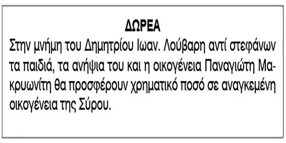 Δωρεά για Δημήτριο Ιωάν. Λούβαρη