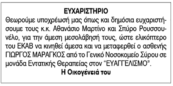 Ευχαριστήριο Γεωργίου Μαραγκού