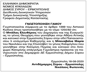 Γνωστοποίηση Γάμου Μπάϊλα Ελευθερίου και Μπονοβόλια Μαρίας Κείμενο Βλέπε εικόνα Αριθμός Φύλλου: 5440 Κατηγορία: Γνωστοποίηση Γάμου