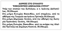 Δωρεές στο Σύλλογο Εθελοντικής Αιμοδοσίας Σύρου Κείμενο Βλέπε εικόνα Αριθμός Φύλλου: 5448 Κατηγορία: Δωρεές
