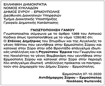 Γνωστοποίηση Γάμου Στέλλα Δημητρίου και Ρηγούτσου Έρρικας Κείμενο Βλέπε Εικόνα Αριθμός Φύλλου: 5476 Κατηγορία: Γνωστοποίηση Γάμου