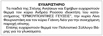 Ευχαριστήριο Στέγης Ανηλίκων
