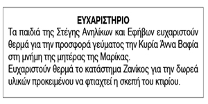 Ευχαριστήριο Στέγης Ανηλίκων
