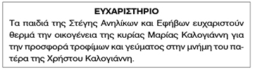 Ευχαριστήριο Στέγης Ανηλίκων