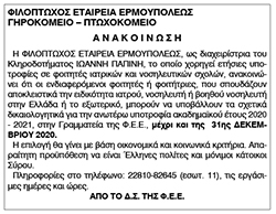 Χορηγία ετήσιων υποτροφιών Κληροδοτήματος Ιωάννη Παπίνη Κείμενο Βλέπε εικόνα Αριθμός Φύλλου: 5526 Κατηγορία: Ανακοίνωση