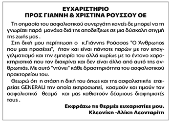 Ευχαριστήριο Αλίκης Λεονταρίτη