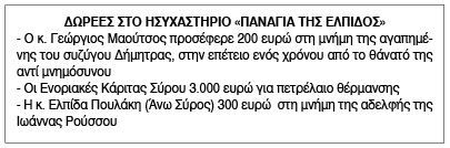 Δωρεές στο Ησυχαστήριο "Παναγία της Ελπίδος" Κείμενο Βλέπε εικόνα Αριθμός Φύλλου: 5544 Κατηγορία: Δωρεές