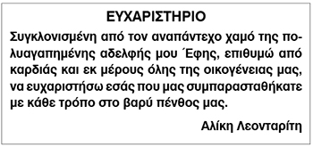 Ευχαριστήριο Αλίκης Λεονταρίτη
