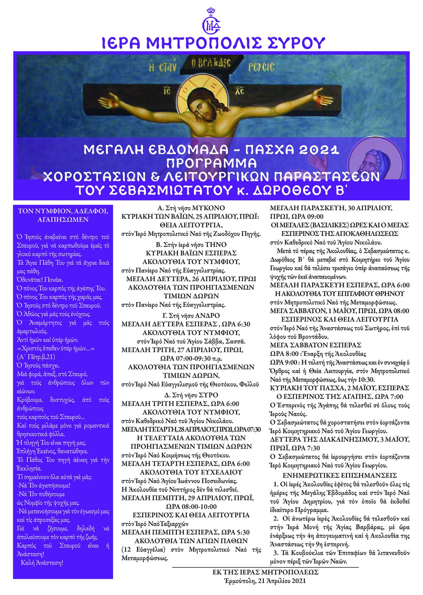 Πρόγραμμα Μεγάλης Εβδομάδας της Ιεράς Μητρόπολης Σύρου Κείμενο Βλέπε εικόνα Αριθμός Φύλλου: Αριθμός Φύλλου 5611 Κατηγορία: Κατηγορία Ανακοίνωση