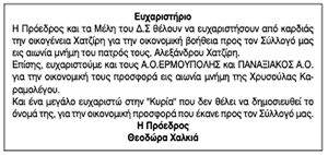 Ευχαριστήριο από τον Σύλλογο Καρκινοπαθών και Φίλων Κυκλάδων Κείμενο Βλέπε εικόνα. Αριθμός Φύλλου: 5632 Κατηγορία: Ευχαριστήριο