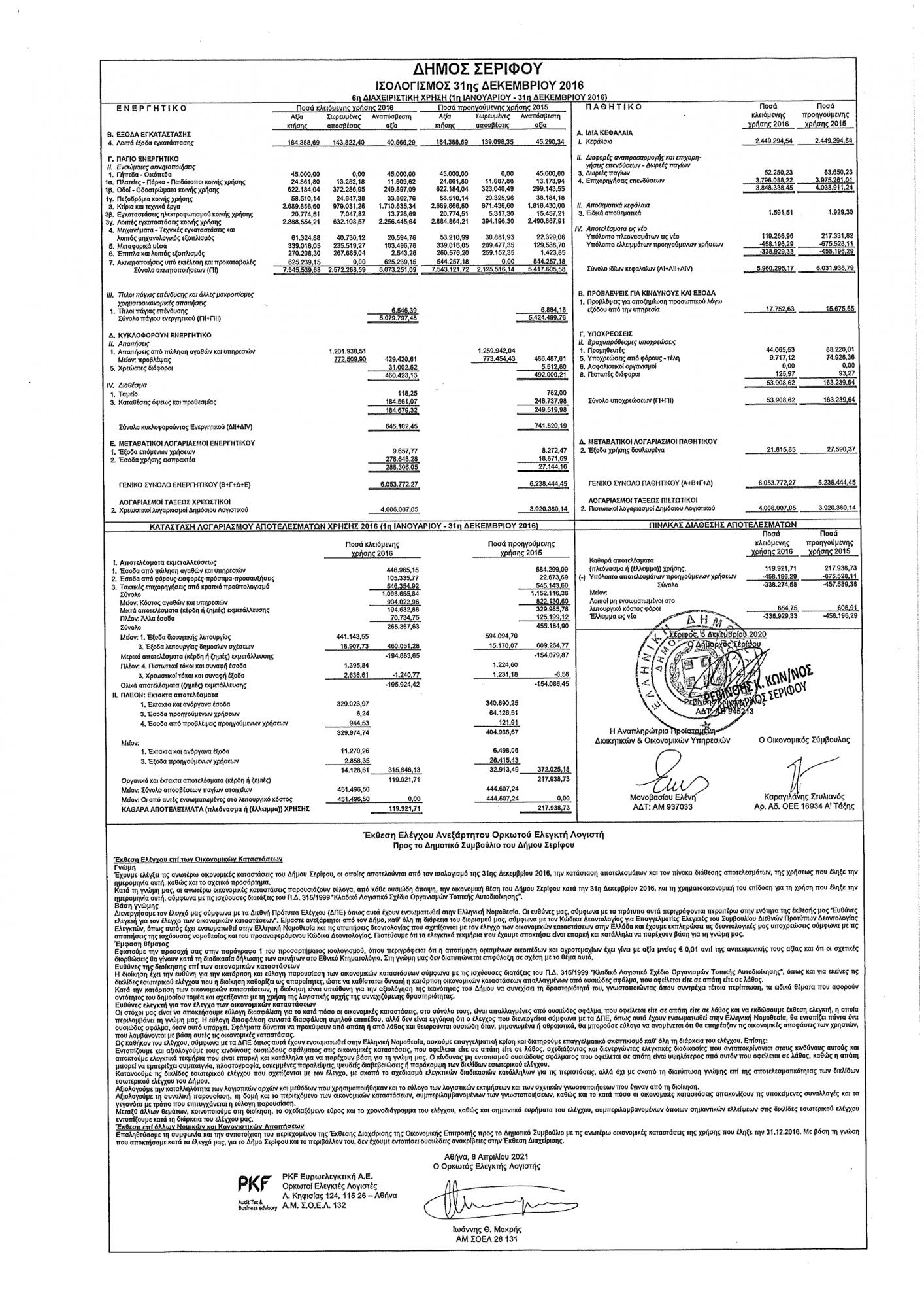 Ισολογισμός 2016 Δήμου Σερίφου Κείμενο Βλέπε εικόνα. Αριθμός Φύλλου: Αριθμός Φύλλου 5635 Κατηγορία: Κατηγορία Ισολογισμοί