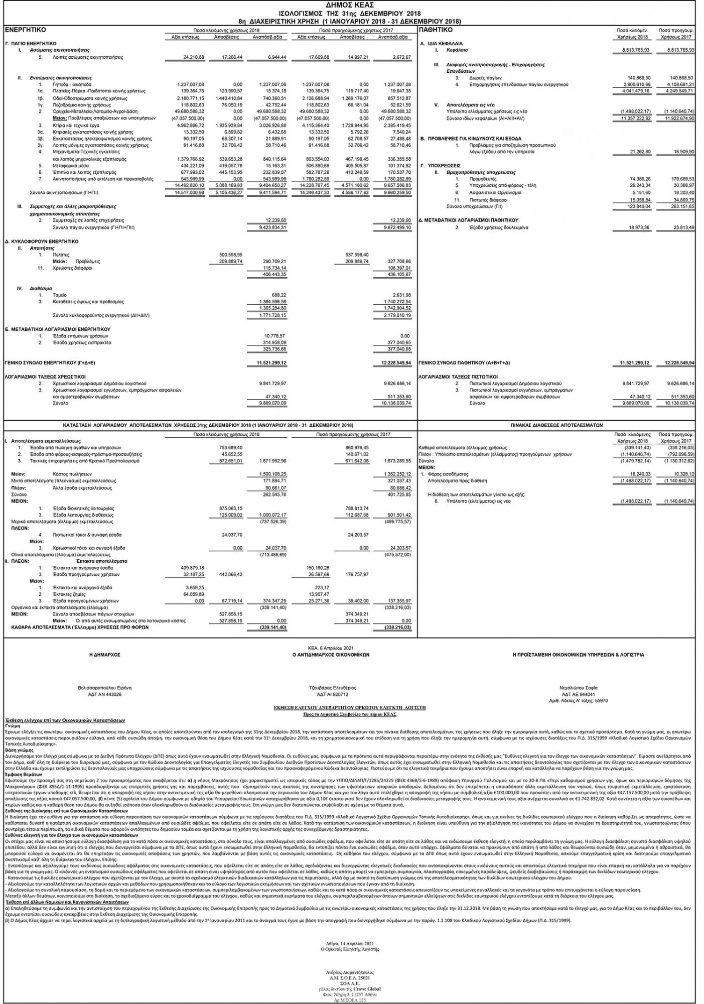 Ισολογισμός 2018 Δήμου Κέας