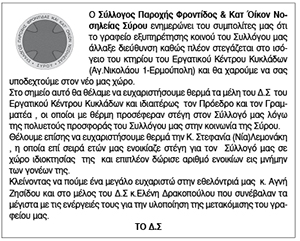 Ανακοίνωση από την Κατ' οίκον Νοσηλεία Σύρου Κείμενο Βλέπε εικόνα. Αριθμός Φύλλου: Αριθμός Φύλλου 5642 Κατηγορία: Κατηγορία Ανακοίνωση