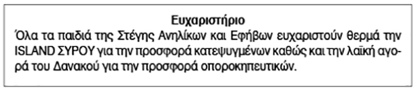 Ευχαριστήριο από την Στέγη Ανηλίκων και Εφήβων Σύρου Κείμενο Βλέπε εικόνα. Αριθμός Φύλλου: 5656 Κατηγορία: Ευχαριστήριο