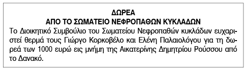Δωρεές στο Σωματείο Νεφροπαθών Κυκλάδων