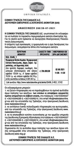 Εθνική Τράπεζα της Ελλάδος, πώληση ακινήτων ιδιοκτησίας της Κείμενο Βλέπε εικόνα. Αριθμός Φύλλου: 5681 Κατηγορία: Ανακοίνωση