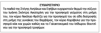 Ευχαριστήριο από την Στέγη Ανηλίκων και Εφήβων Σύρου Κείμενο Βλέπε εικόνα Αριθμός Φύλλου: 570 Κατηγορία: Ευχαριστήριο