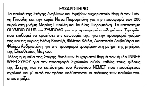 Ευχαριστήριο από την Στέγη Ανηλίκων και Εφήβων Σύρου Κείμενο Βλέπε εικόνα. Αριθμός Φύλλου: 5711 Κατηγορία: Ευχαριστήριο