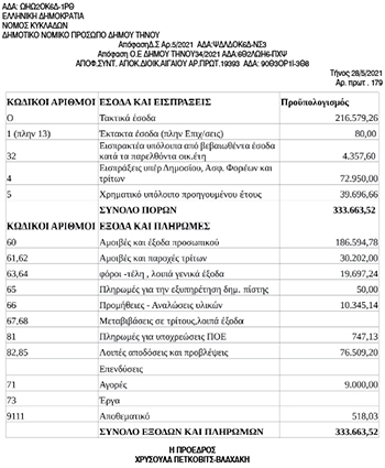 Συνοπτοκή Κατάσταση Προϋπολογισμού οικ. Έτους 2021 από Νομικό Πρόσωπο Δήμου Τήνου Κείμενο Βλέπε εικόνα. Αριθμός Φύλλου: 5712 Κατηγορία: Προϋπολογισμοί